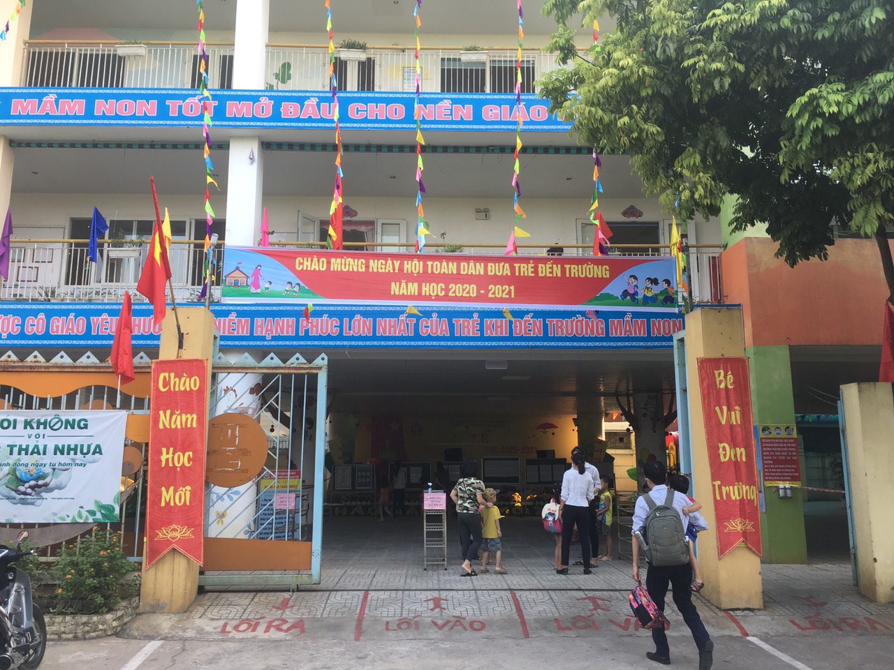 Phụ huynh đưa các con đi học