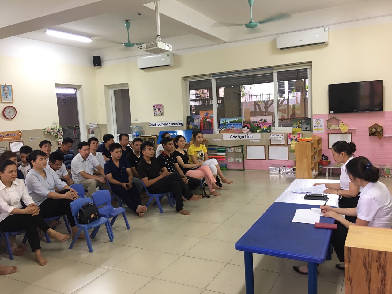 Năm học 2019-2020 , một năm học đặc biệt khi có dịch covid19, vượt qua mọi khó khăn ,với sự cố gắng, nỗ lực của các cô giáo , sự động viên, ủng hộ nhiệt tình của các bậc phụ huynh nhà trường cô và trò11 lớp đã đạt được những thành tích đáng khích lệ, nhất là đối với học sinh khối mẫu giáo lớn. Trong buổi họp phụ huynh các lớp, giáo viên đã điểm lại những thành tích của nhà trường và kết quả cũng như nhận xét của các cô về các con qua một năm học và kế hoạch hoạt động hè năm học 2019-2020. Phụ huynh rất phấn khởi khi biết con em mình ngày một tiến bộ và hiểu biết , xứng đáng danh hiệu cháu ngoan Bác Hồ.