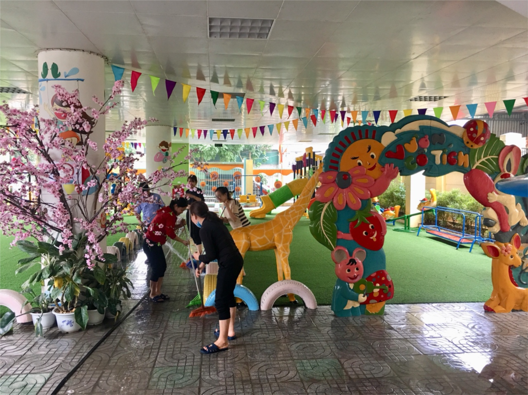 Thực hiện theo lịch nghỉ tết của Sở Giáo Dục và đào tạo Hà Nội, học sinh được nghỉ từ ngày 01/02/2019, giáo viên nghỉ tết từ ngày 2/2/2019. Để môi trường nhà trường luôn đảm bảo Sáng, xanh sạch đẹp trong dịp nghỉ tết 9 ngày, BGH nhà trường phối hợp với công đoàn tổ chức tổng vệ sinh toàn trường, tân trang khung cảnh sư phạm đồng thời tiến hành kiểm kê tài sản các phòng chức năng, phòng hành chính và các lớp, bàn giao tài sản cho tổ bảo vệ. Sau một buổi sáng tập trung làm việc, toàn bộ trường được vệ sinh sạch sẽ, đồ chơi ngoài trời, sân, cổng đều được cọ rửa, cây cối được cắt tỉa gọn gàng chuẩn bị đón tết năm mới.