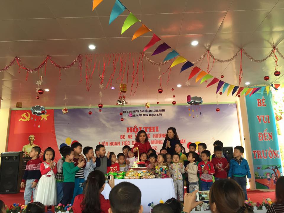 , Sáng ngày 17 /2/2017 trường mầm non Thạch Cầu lại tưng bừng tổ chức sinh nhật cho các bé tháng 2 trong không khí ấm áp, vui tươi và đầy ý nghĩa .Các bé cùng các cô đã chuẩn bị những tiết mục văn nghệ vô cùng đặc sắc để đem đến cho chương trình .Tất cả các bé đều rất mạnh dạn tự tin với những bài hát, điệu nhảy vui nhộn. Niềm vui, sự phấn khởi thể hiện trên khuôn mặt rạng ngời của trẻ .
