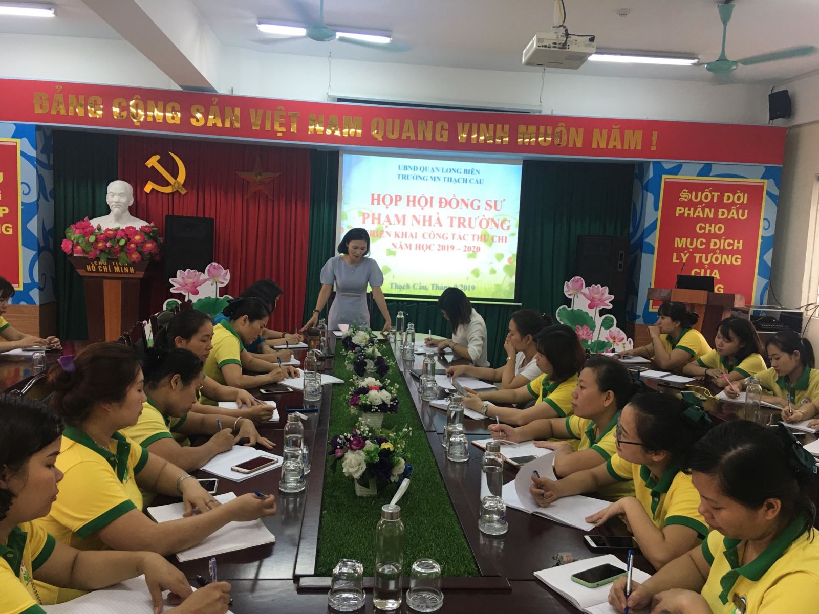 Thực hiện theo công văn của UBND Quận và công văn của PGD về công tác thu chi đầu năm học năm 2019 -2020.Sau thực hiện đúng quy trình họp ban giám hiệu, họp với đại diện ban phụ huynh các lớp về công tác thu chi năm học 2019-2020 , chiều ngày 20/9/2019, nhà trường tổ chức họp hội đồng sư phạm nhà trường triển khai công tác thu chi năm học 2019-2020 tới 100% GV, NV trong nhà trường.