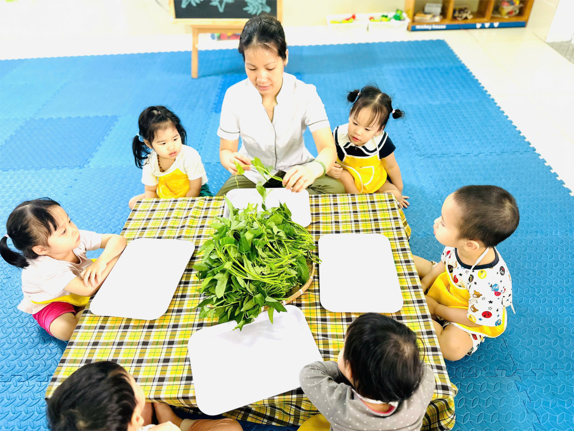 Nhằm tạo cơ hội cho trẻ được học tập thông qua trải nghiệm thực tế, lớp nhà trẻ D2 – Trường Mầm non Thạch Cầu đã tổ chức hoạt động “Nhặt rau muống” với sự tham gia hào hứng của các bé. Đây là một hoạt động gần gũi, quen thuộc trong đời sống hằng ngày nhưng mang lại nhiều giá trị giáo dục thiết thực.Thông qua hoạt động, trẻ được rèn luyện sự khéo léo của đôi bàn tay, phát triển vận động tinh của các ngón tay thông qua các thao tác cầm, nhặt và tách rau. Bên cạnh đó, trẻ biết sử dụng đôi tay một cách linh hoạt để phân loại phần ăn được và không ăn được, từ đó nâng cao khả năng quan sát và nhận thức.