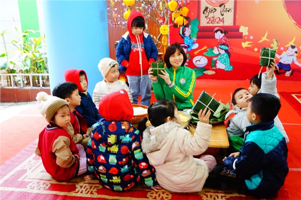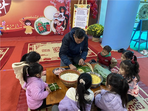 Tập ảnh : Hoạt động trải nghiệm gói bánh chưng của bé