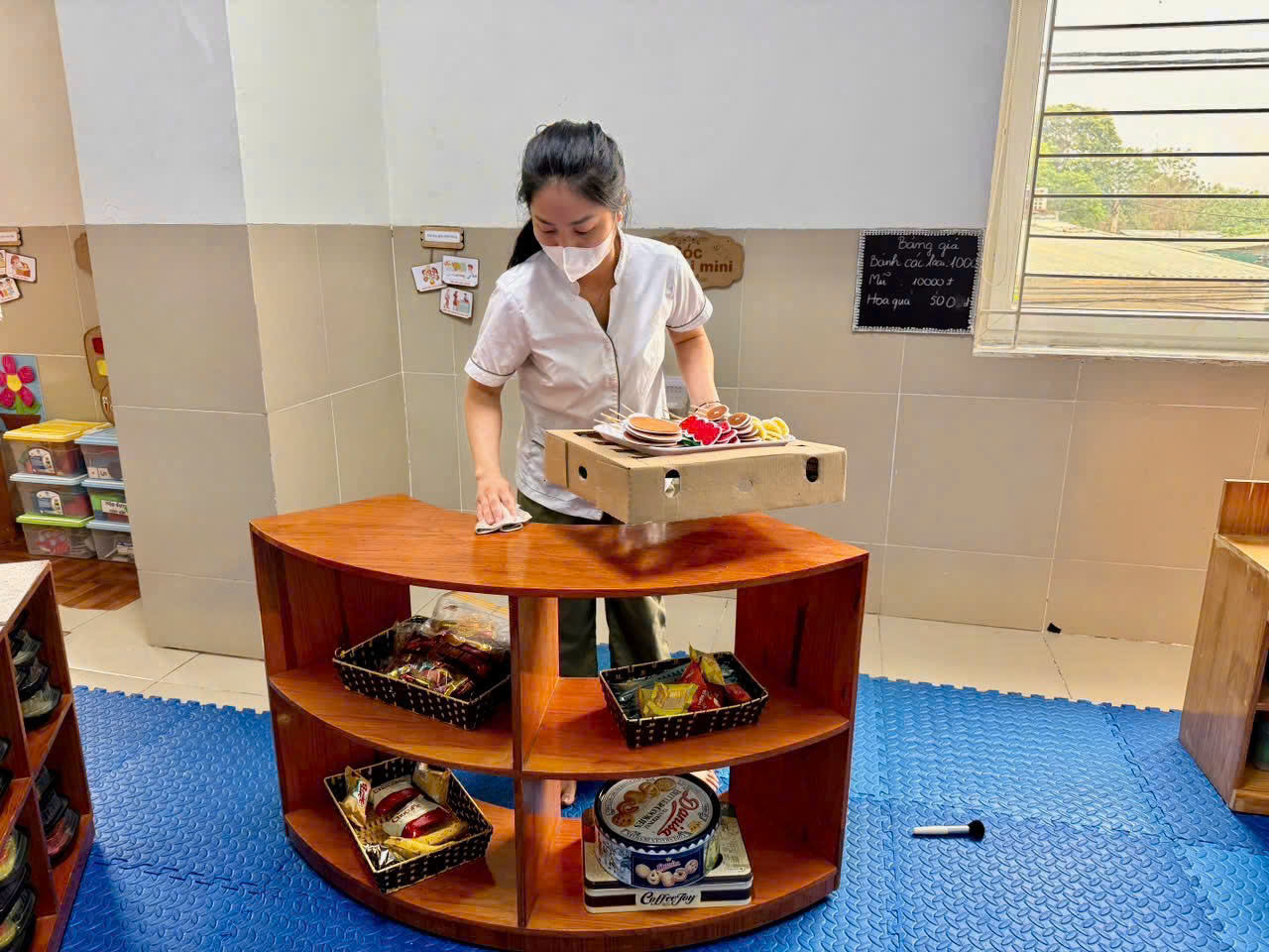 Trong buổi tổng vệ sinh, toàn thể cán bộ, giáo viên và nhân viên đã tích cực tham gia dọn dẹp, lau chùi phòng học, hành lang, khu vui chơi và các khu vực chức năng. Đồ dùng, đồ chơi của trẻ được vệ sinh sạch sẽ, sắp xếp gọn gàng, đảm bảo an toàn và thuận tiện cho quá trình sử dụng.