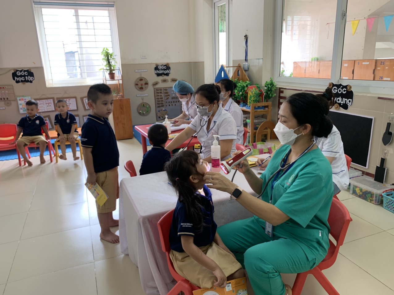 Công tác chăm sóc sức khoẻ cho trẻ là một trong những hoạt động được nhà trường vô cùng chú trọng và đặc biệt quan tâm. Từ nhiều năm nay, việc tổ chức khám sức khoẻ định kỳ cho trẻ đã được nhà trường duy trì thành nền nếp thực hiện theo kế hoạch trong năm học.