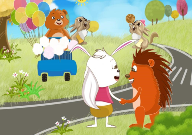Nhím động viên Thỏ: “Từ nay chúng mình cùng phải cẩn thận hơn khi sang đường, phải nhìnsang trái, sang phải, không có xe đến gần mới được qua đường”. Thỏ bẽn lẽn: “Tớ đồng ý”.