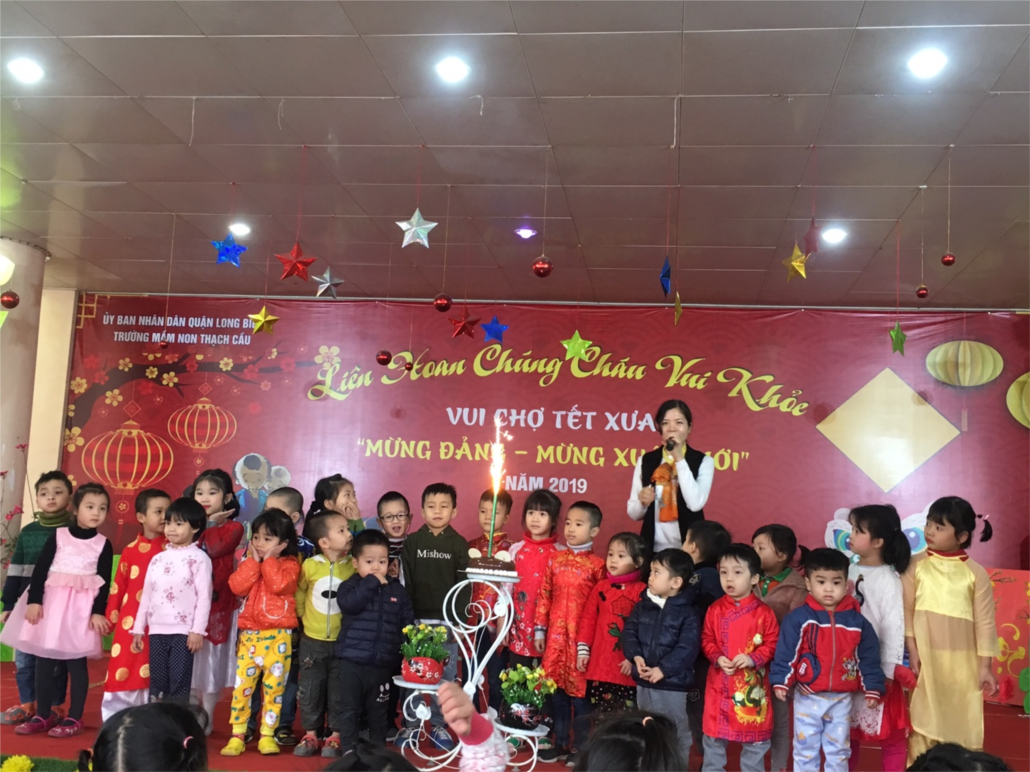 Sáng ngày 23/12/2018, Trường mầm non Thạch Cầu tổ chức “ Liên hoan chúng cháu vui khỏe” cấp trường năm học 2018-2019 – Tiệc buffet mừng sinh nhật các bé tháng 1 trong không khí tưng bừng, rực rỡ đón xuân.